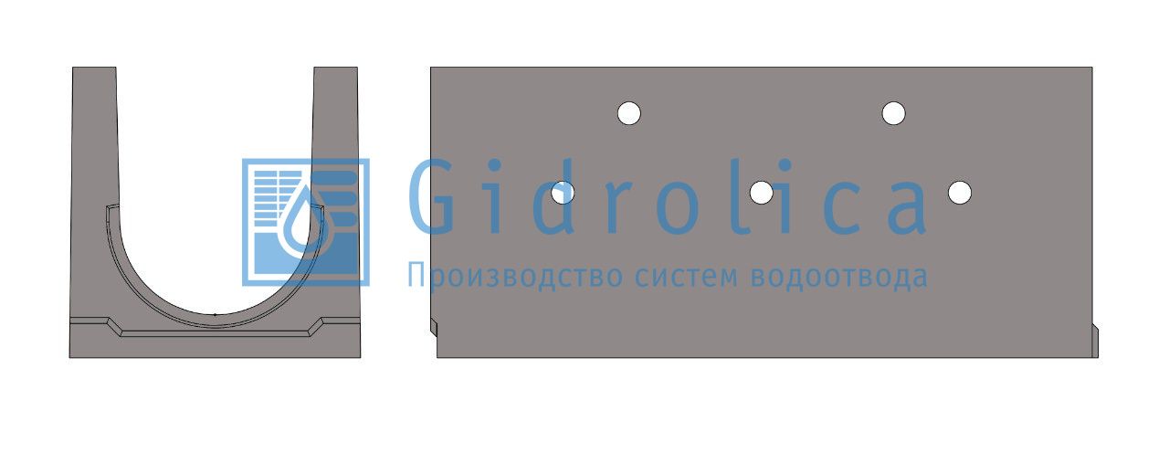 Лоток водоотводный бетонный коробчатый (СО-300мм), с дренажным отверстием слева KUол 100.44(30).49(42,5) - BGU во Владивостоке